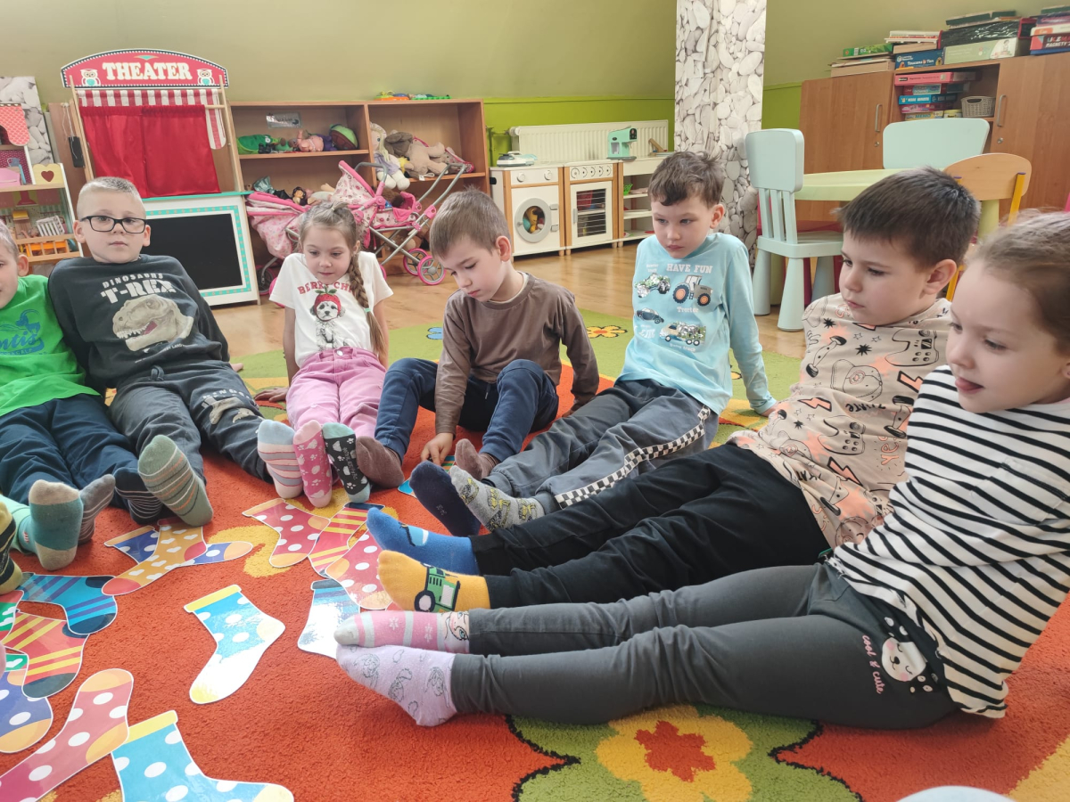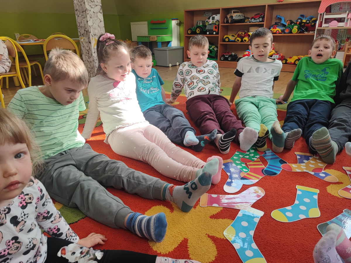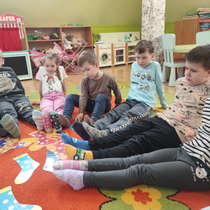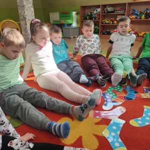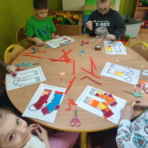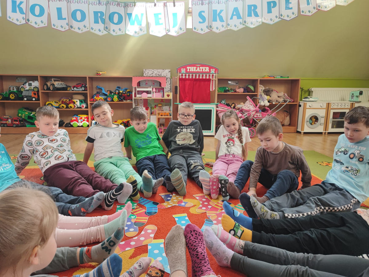 20 marca obchodziliśmy w przedszkolu Dzień Kolorowej Skarpetki jako symbol solidarności z osobami z Zespołem Downa. Przedszkolaki założyły tego dnia dwie różne, kolorowe skarpetki („nie do pary”), co uczy empatii, tolerancji i akceptacji różnorodności. Pszczółki zaprojektowały również swoje skarpetki.