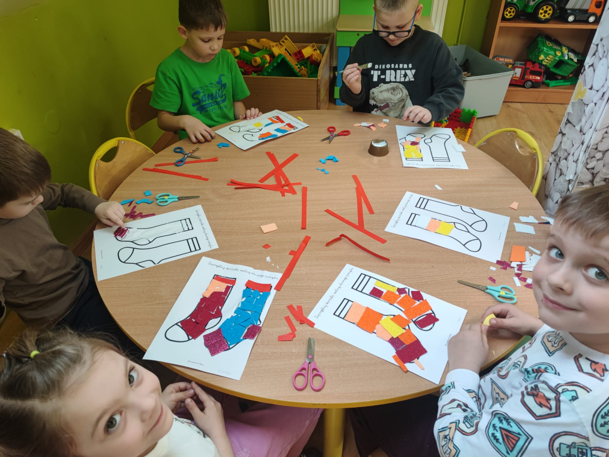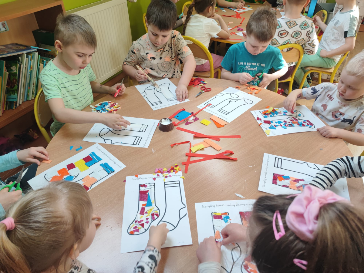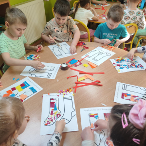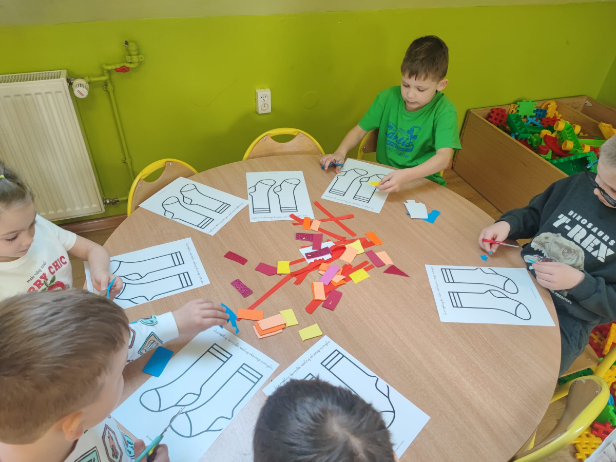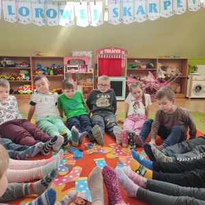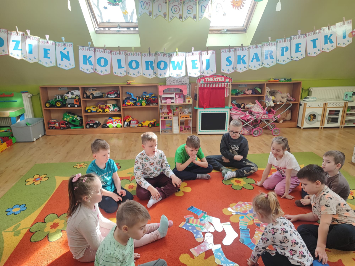20 marca obchodziliśmy w przedszkolu Dzień Kolorowej Skarpetki jako symbol solidarności z osobami z Zespołem Downa. Przedszkolaki założyły tego dnia dwie różne, kolorowe skarpetki („nie do pary”), co uczy empatii, tolerancji i akceptacji różnorodności. Pszczółki zaprojektowały również swoje skarpetki.
