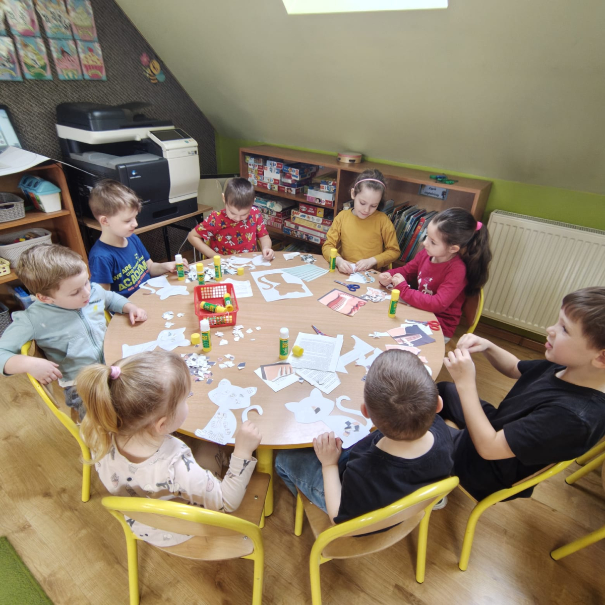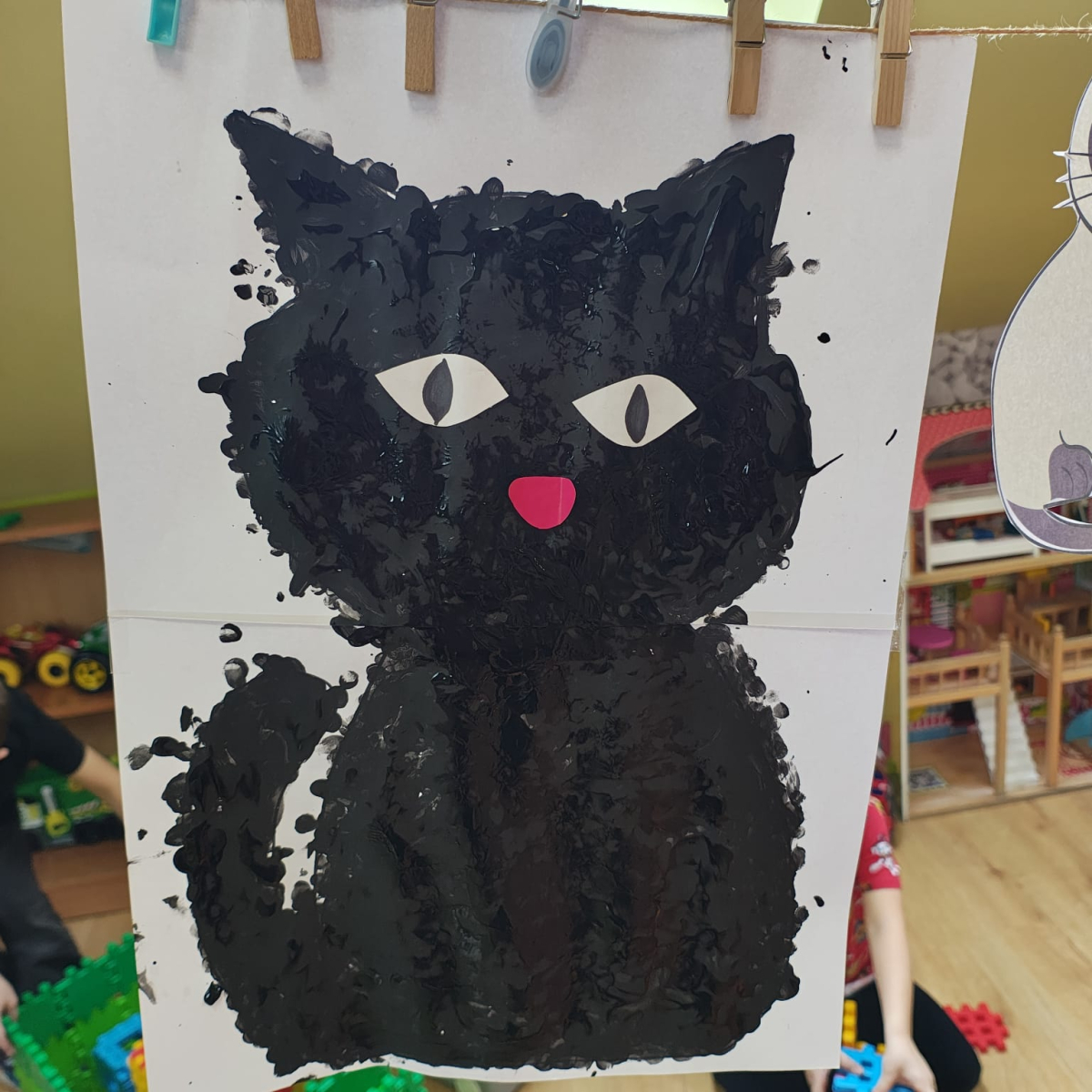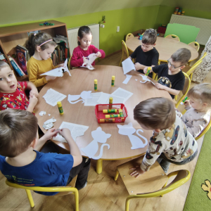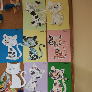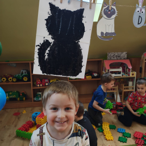 Nie zabrakło także działań plastycznych - dzieci stworzyły kotki z papieru oraz grupową pracę kota.