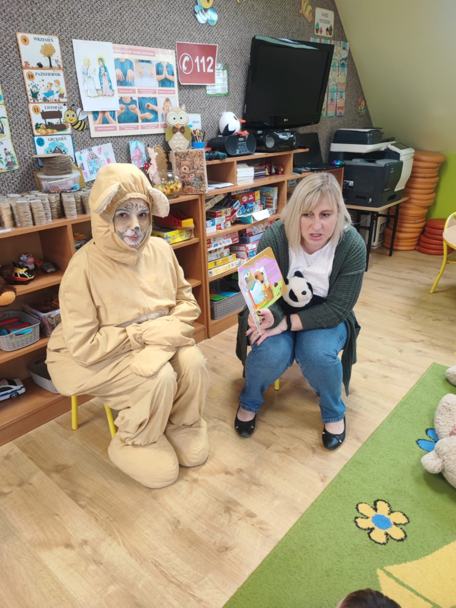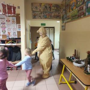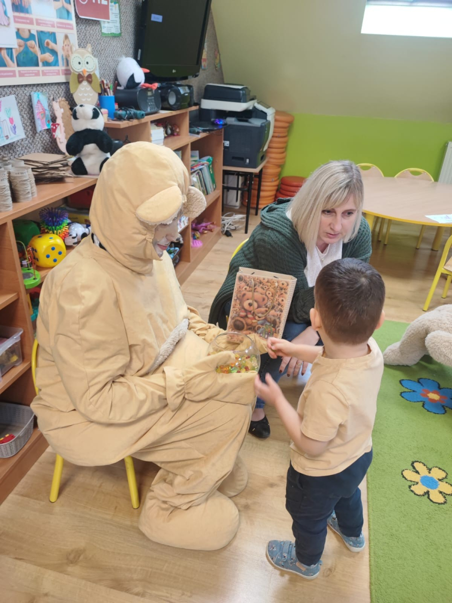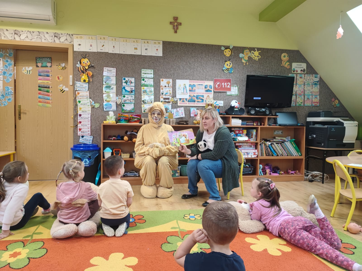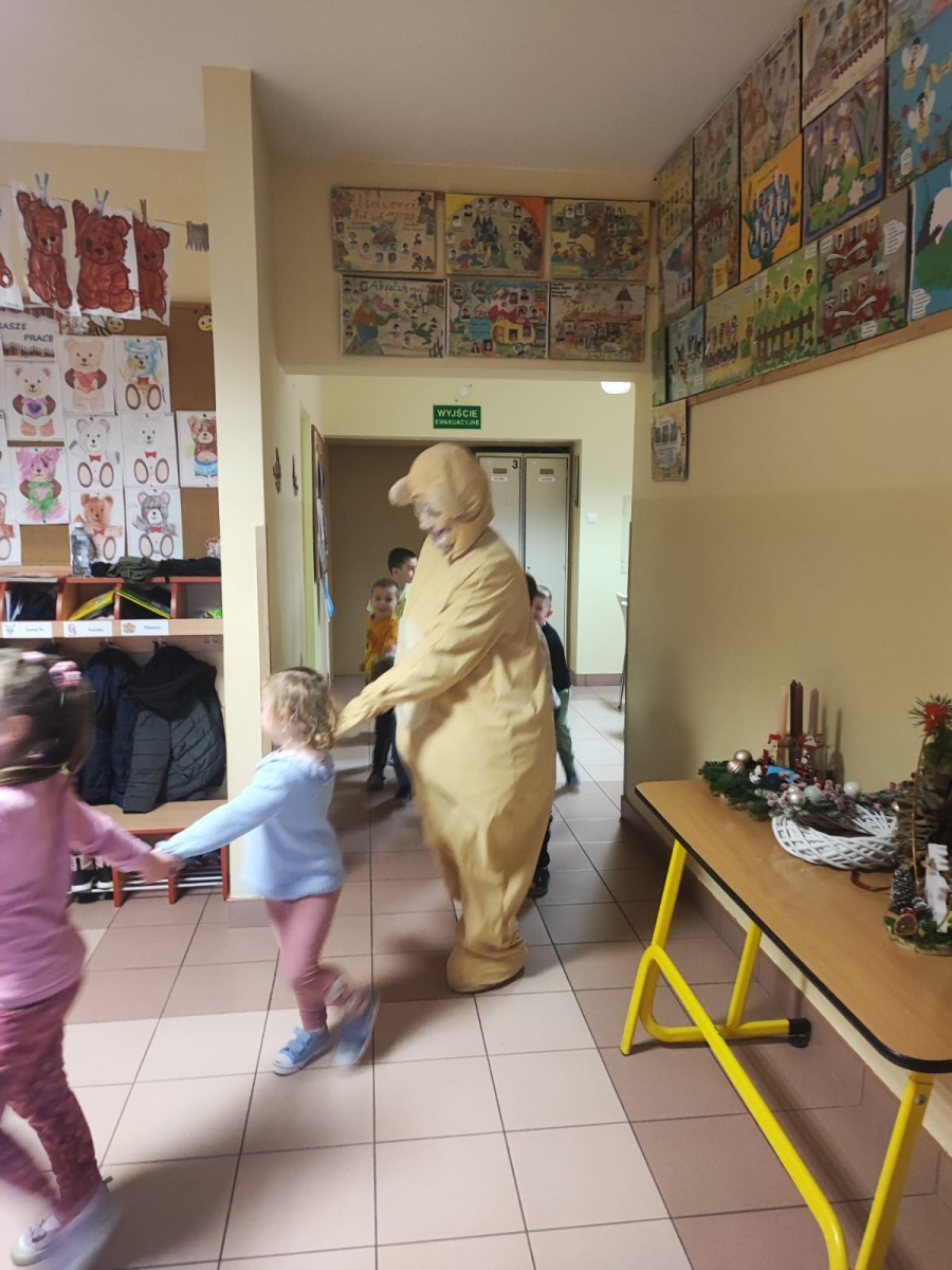 A w przedszkolu zjawił się także prawdziwy miś, który zorganizował przedszkolakom wspaniałe zabawy.