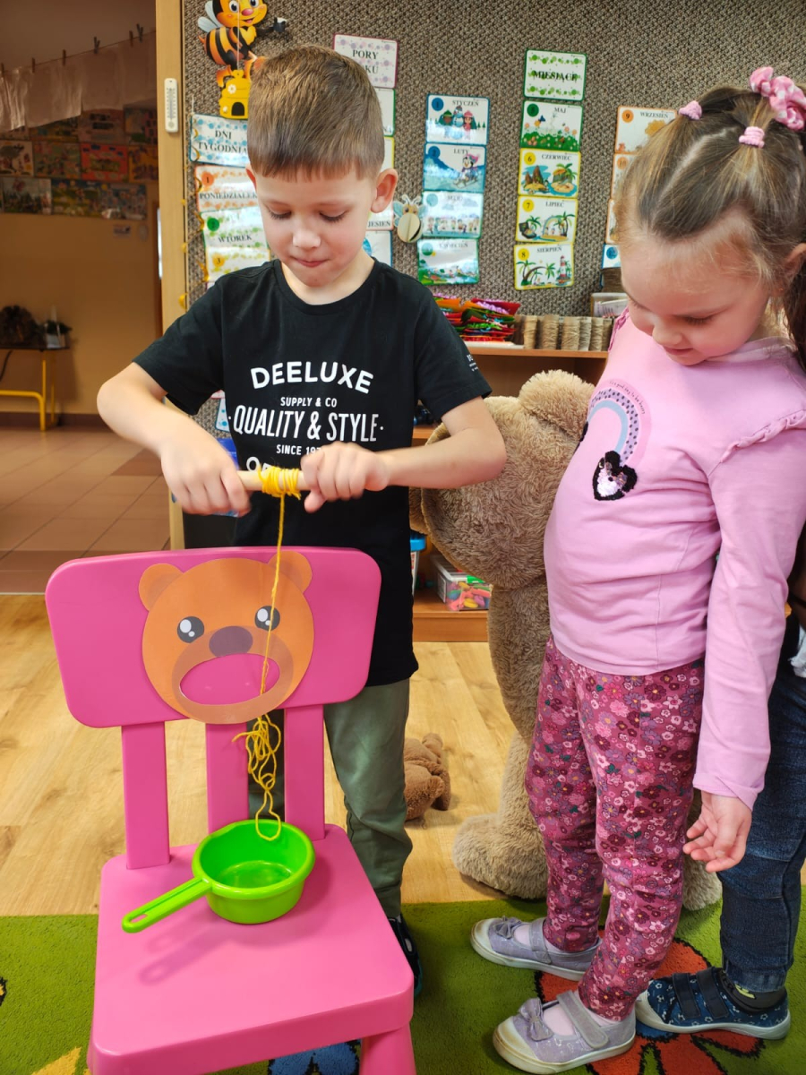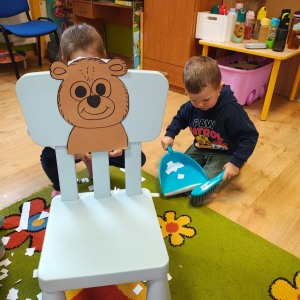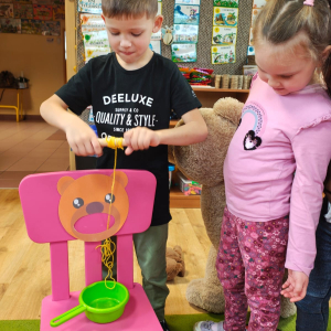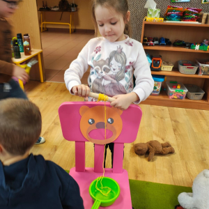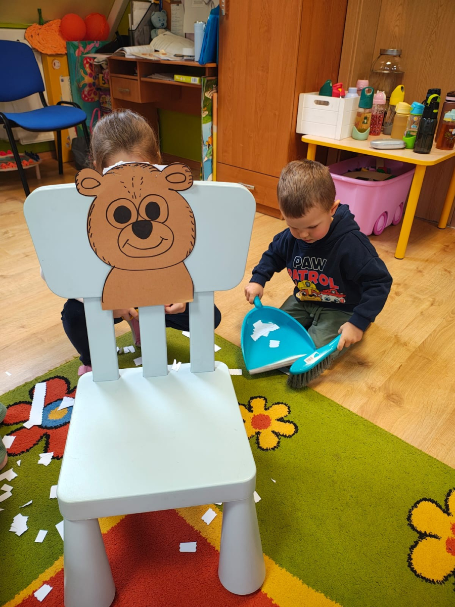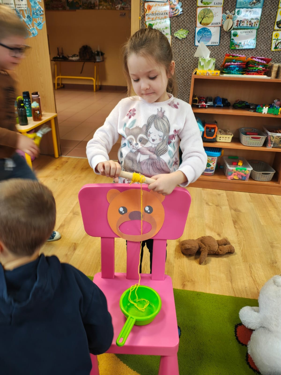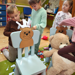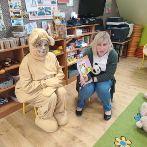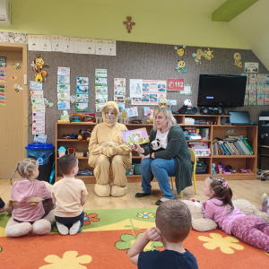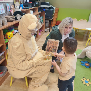 A w przedszkolu zjawił się także prawdziwy miś, który zorganizował przedszkolakom wspaniałe zabawy.