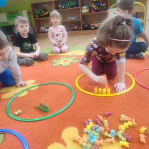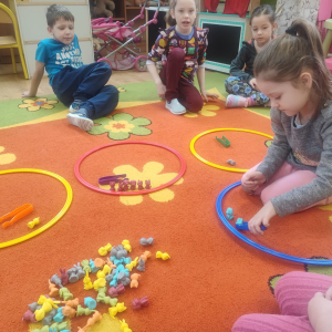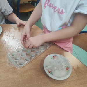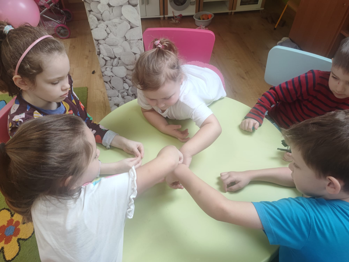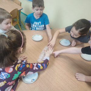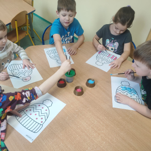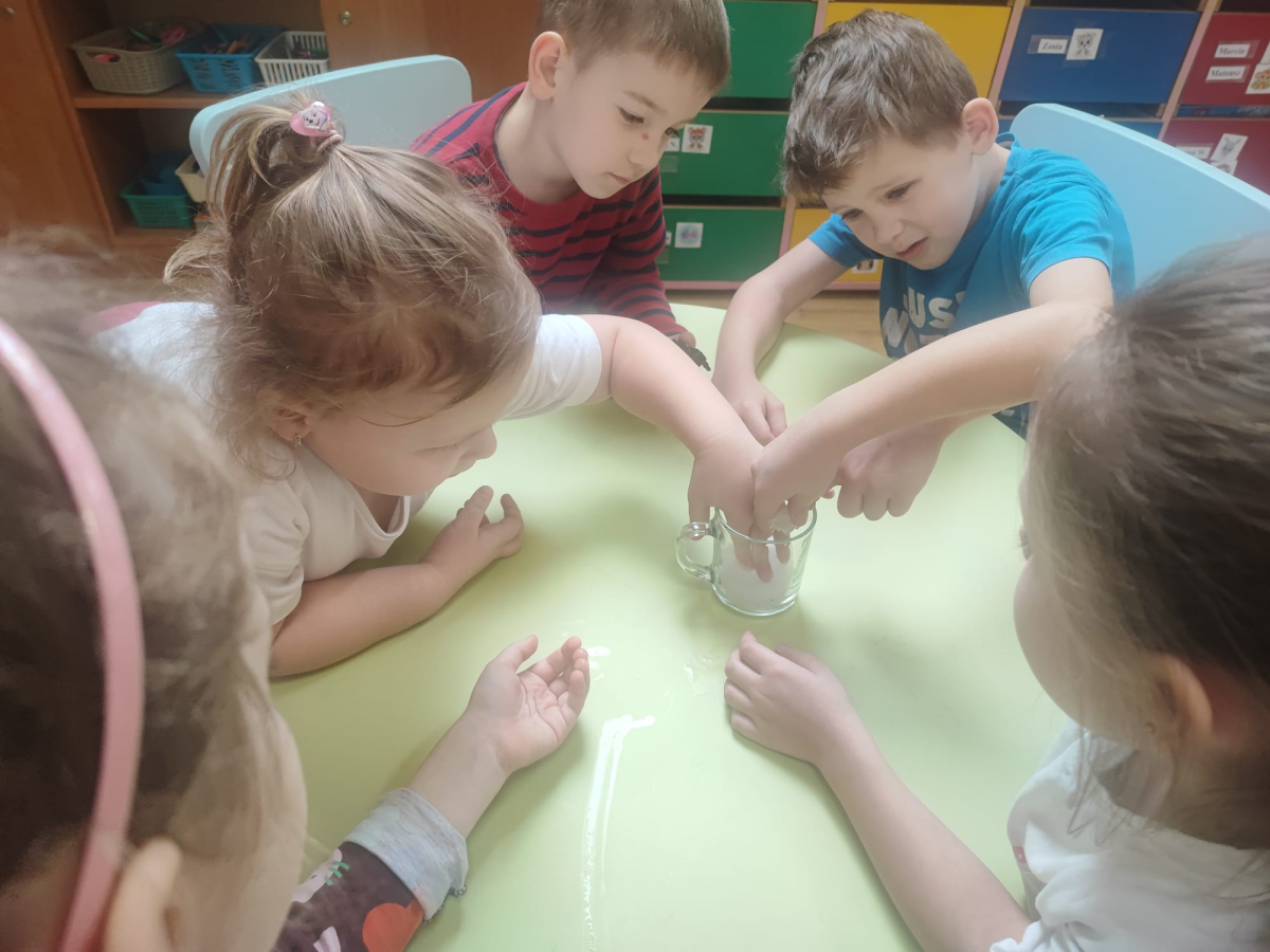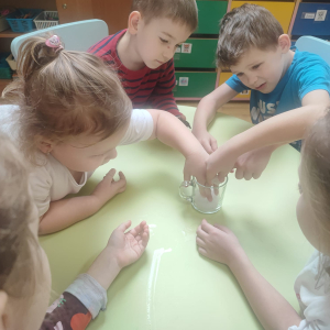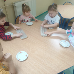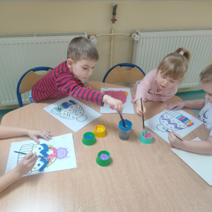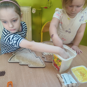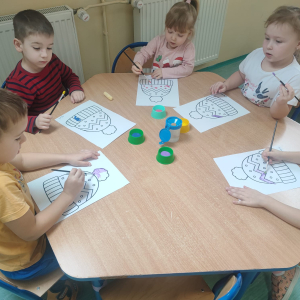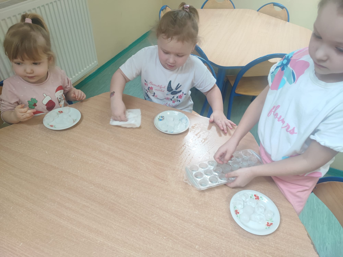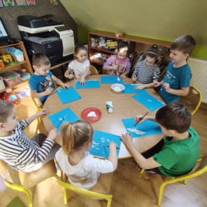 Przedszkolaki podczas ferii malowały zimowy pejzaż za pomocą pasty do zębów, badały właściwości lodu oraz śniegu, za pomocą farb malowaliśmy zimowe czapki, graliśmy w gry edukacyjne na podłodze interaktywnej, przeliczaliśmy oraz segregowaliśmy elementy, było także wiele zabaw sensorycznych.