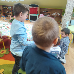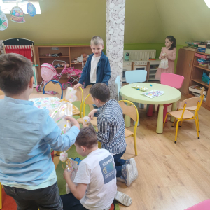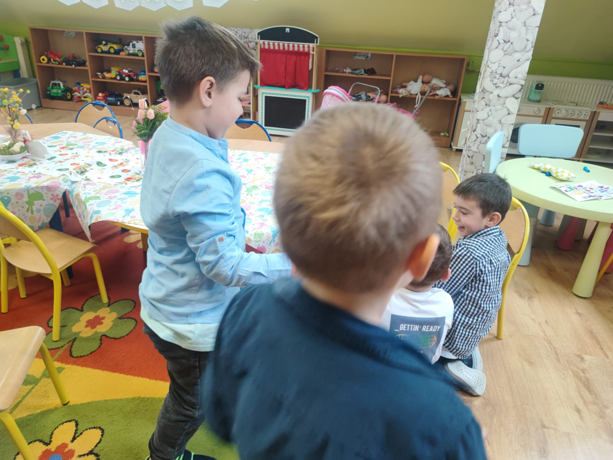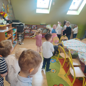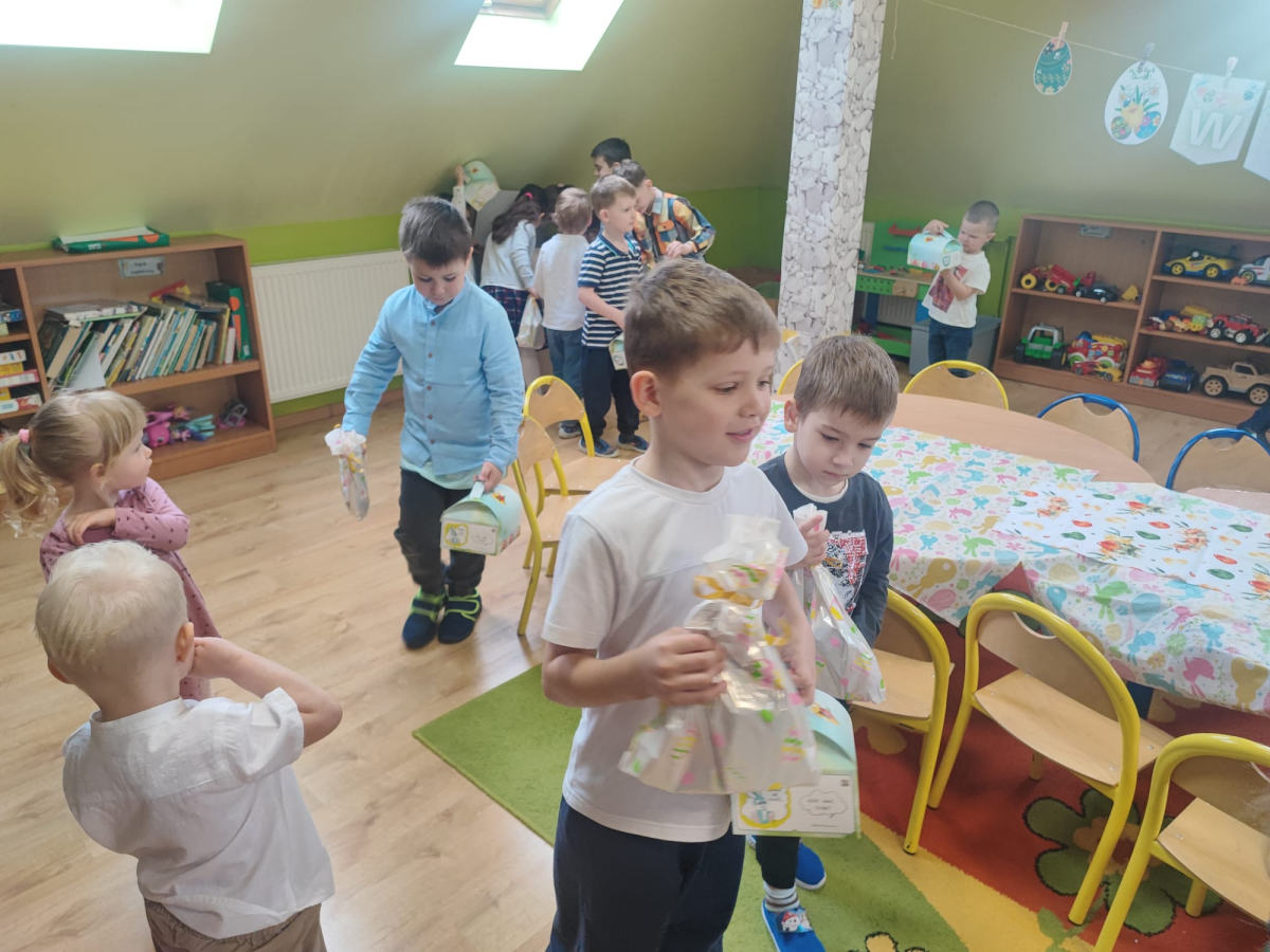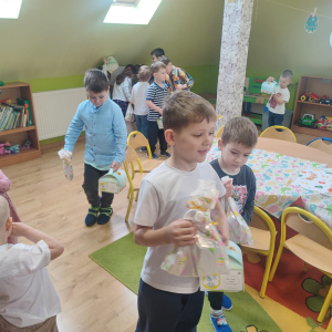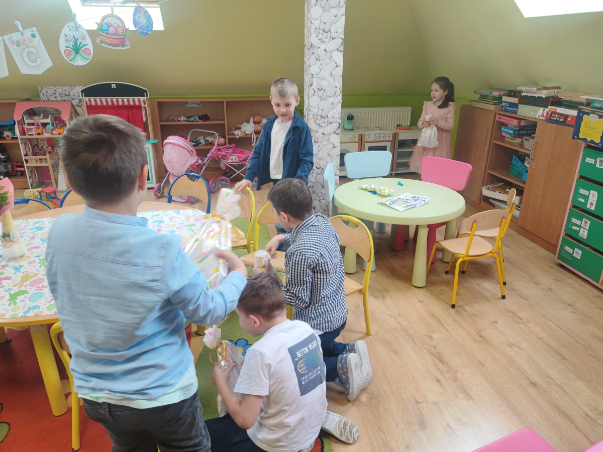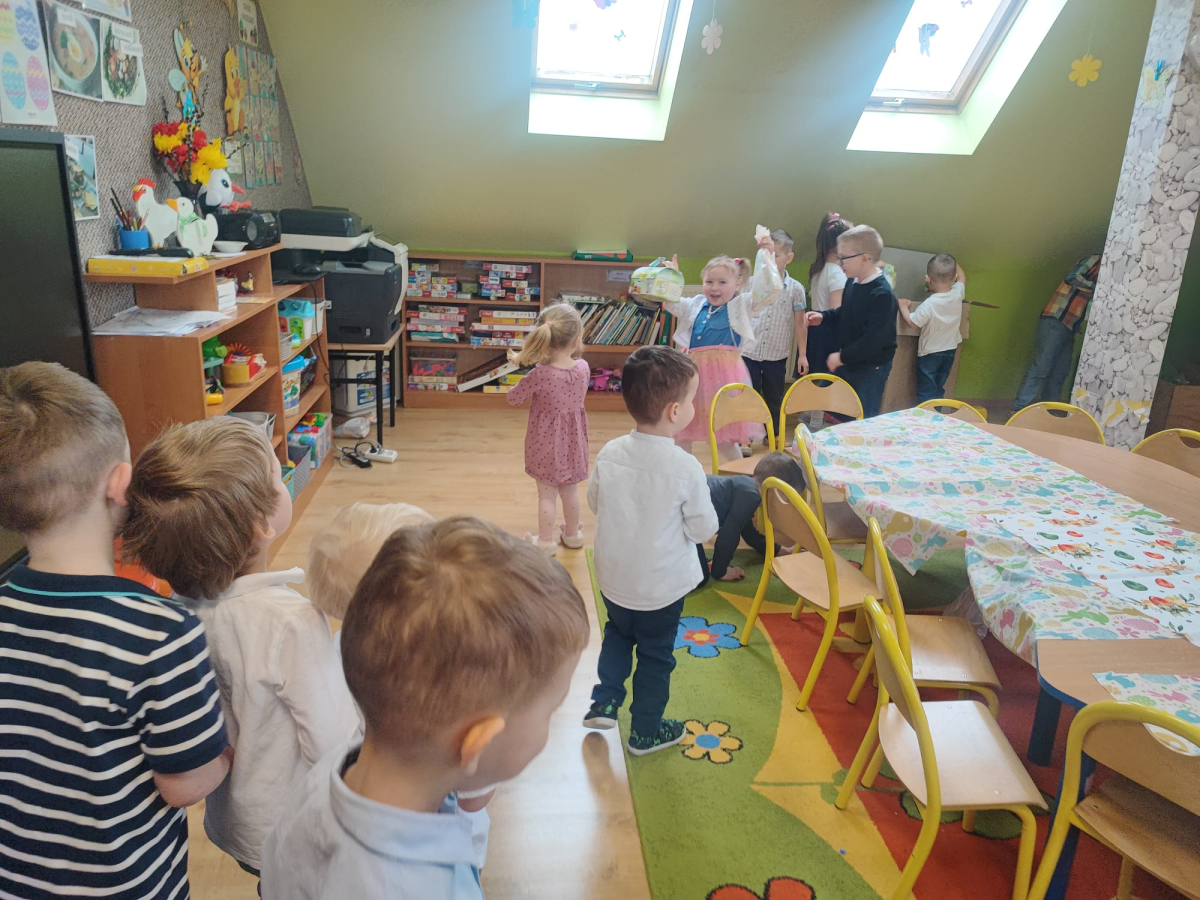 Dziś w naszym przedszkolu odbyło się uroczyste Śniadanie Wielkanocne. Na świątecznym stole nie mogło zabraknąć jajka, szyneczki, rzodkiewki i innych smakołyków. Śniadanko zostało rozpoczęte wspólnym składaniem sobie życzeń świątecznych następnie zasiedliśmy do pięknego stołu zastawionego pokarmami Wielkanocnymi. Ten dzień miał wyjątkowy charakter, dzieci śpiewały piosenki świąteczne i bawiły się w zabawy związane z tradycjami Wielkanocnymi. Po śniadaniu szukaliśmy zajączka, który schował w sali przedszkolnej upominki dla dzieci. Spotkanie przy wspólnym świątecznym stole sprawiło dzieciom wiele radości.