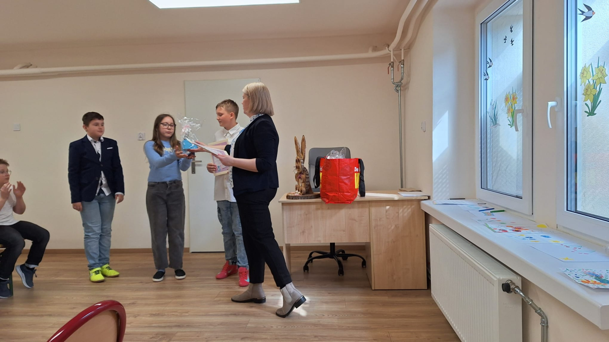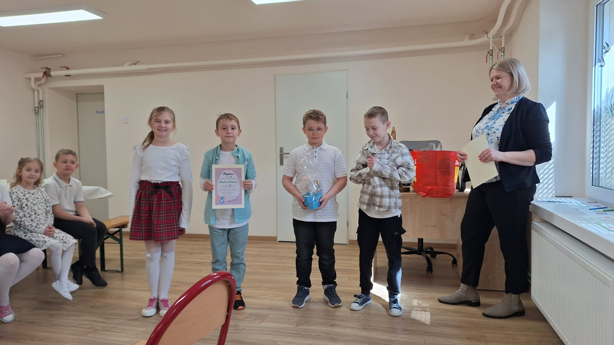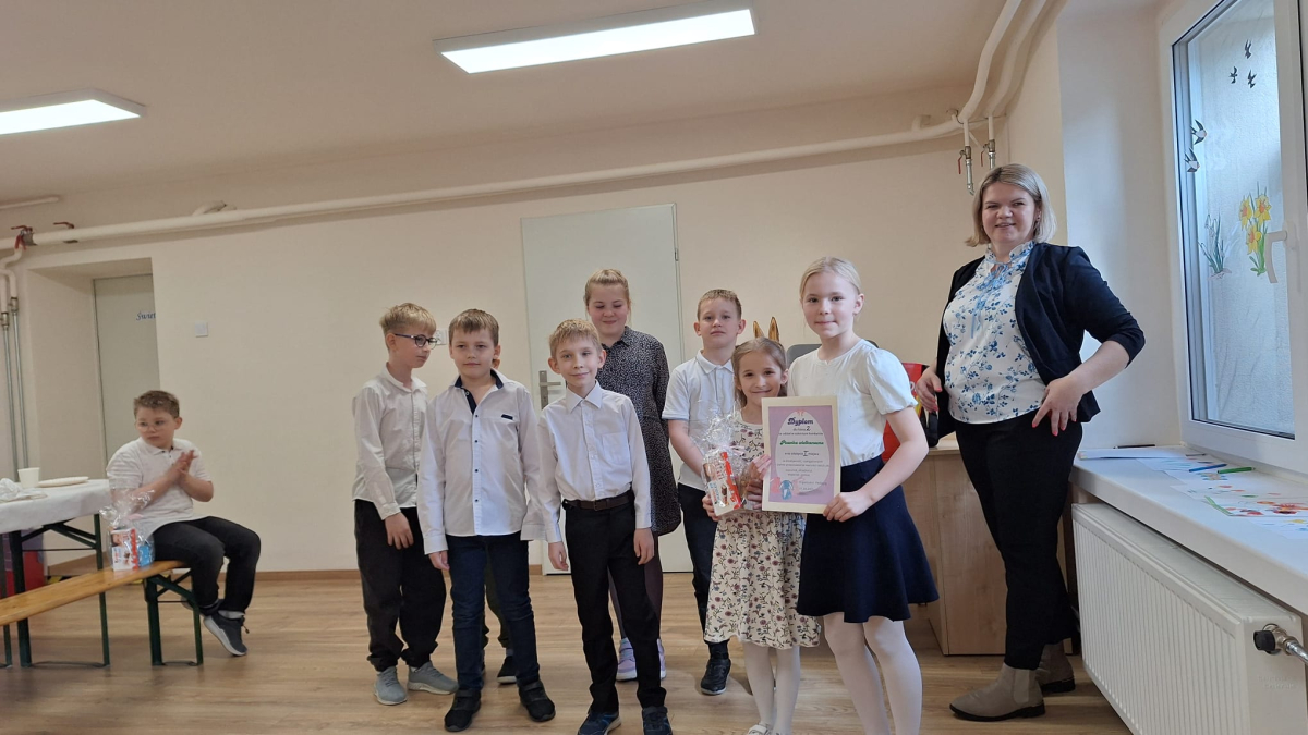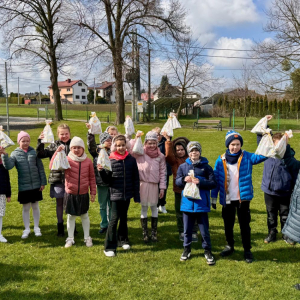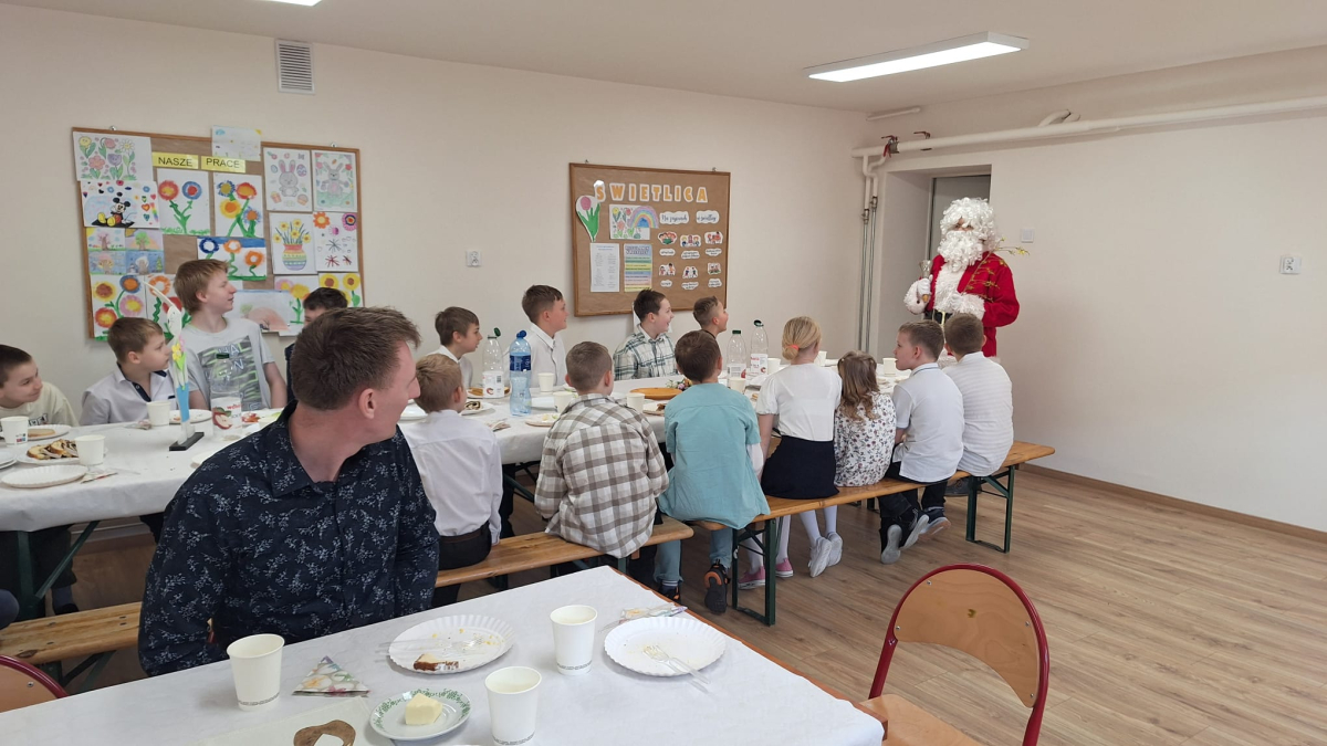 W szkole zorganizowano Śniadanie Wielkanocne. Uczniowie wspólnie zasiedli do suto zastawionego stołu, a cała sala była pięknie udekorowana wiosennymi i świątecznymi ozdobami. Zostały także ogłoszone wyniki konkursu szkolnego na Pisankę Wielkanocną, w którym zwyciężyła klasa 2. Po śniadaniu przewidziano niespodziankę – szukanie zajączka. Dzieci z entuzjazmem przeszukiwały boisko szkolne, aż w końcu odnalazły ukryte prezenty. Ku wielkiemu zdziwieniu i zaskoczeniu odwiedził nas św. Mikołaj. Oczwiście był to żart na Prima Aprilis.
