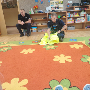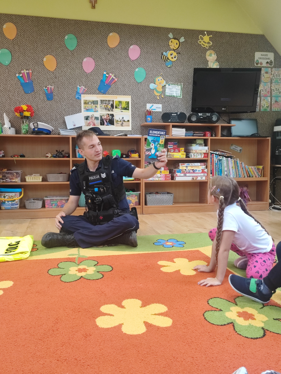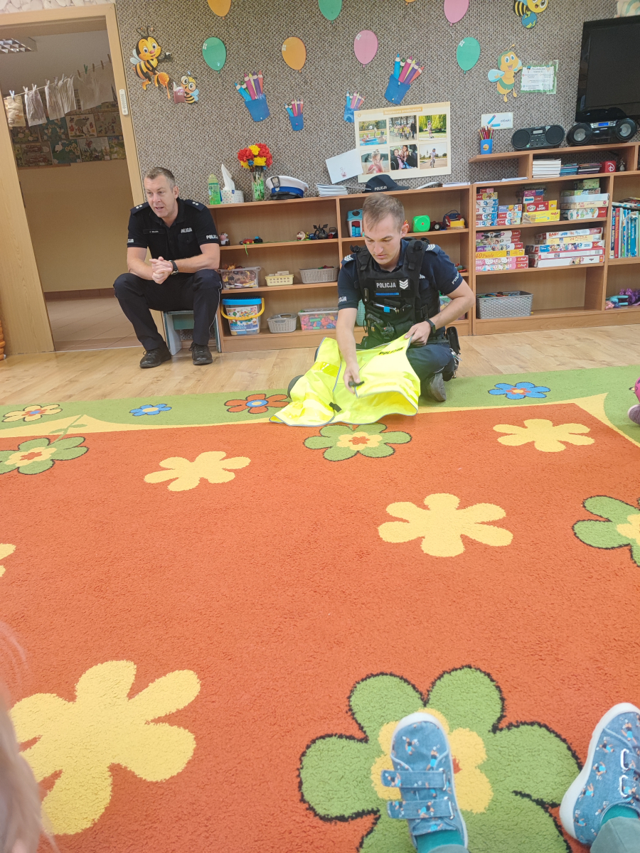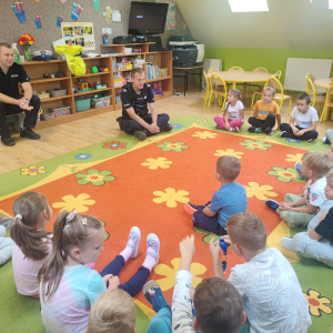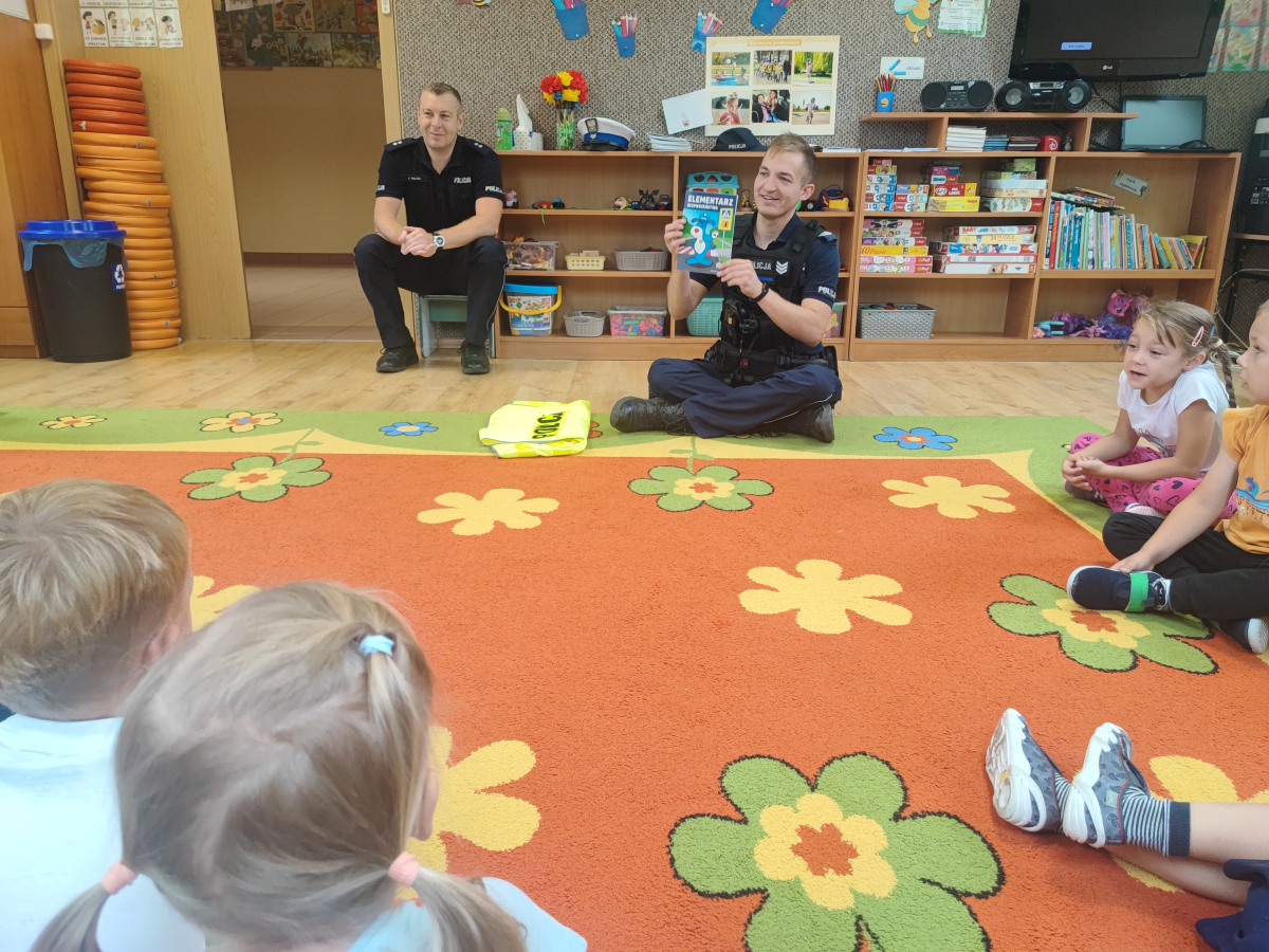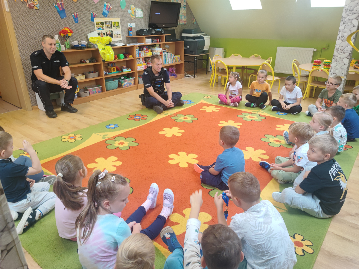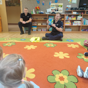 Dziś w przedszkolu odwiedzili nas policjanci. Przedszkolaki dowiedziały się jak powinna wyglądać bezpieczna droga do przedszkola. Prowadzone były rozmowy jak ważne są odblaski jesienną i zimową porą oraz jak należy się zachować gdy zaatakuje nas pies. Dzieci otrzymały książeczkę, której głównym bohaterem jest pies Sznupek.