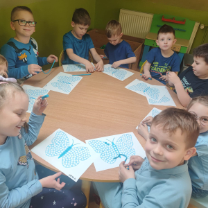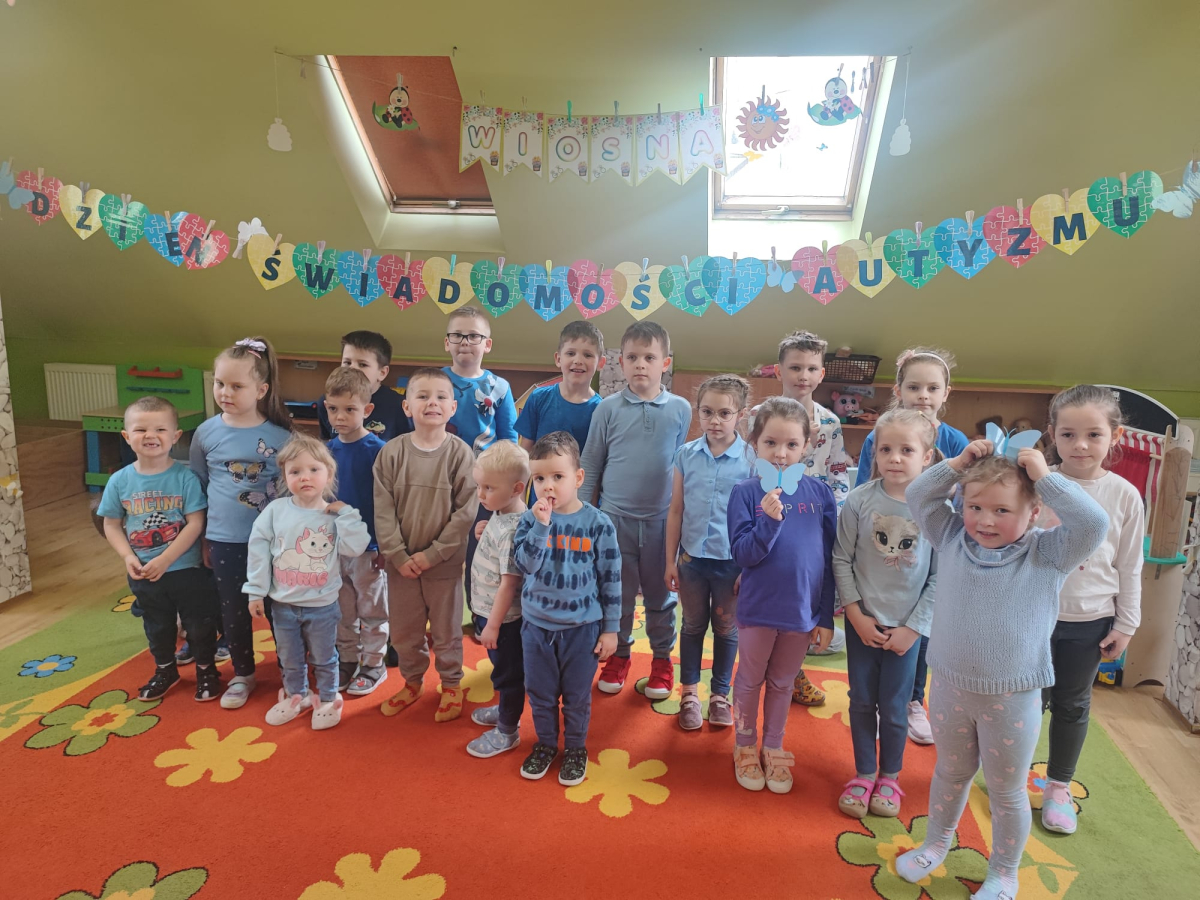 2 kwietnia obchodziliśmy Światowy Dzień Świadomości Autyzmu. To dobra okazja do pokazania naszej życzliwości, otwartości i tolerancji wobec drugiego człowieka. Przedszkolaki w tym dniu ubrały się na niebiesko, wyklejały niebieskie motyle oraz oglądały film "Jaś i niebieskie motyle".