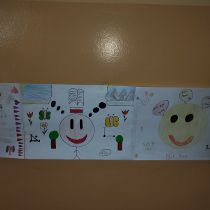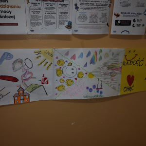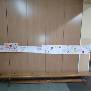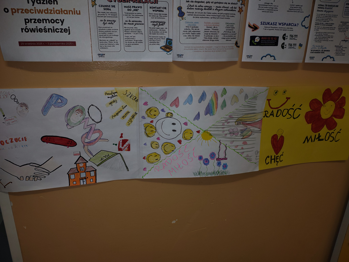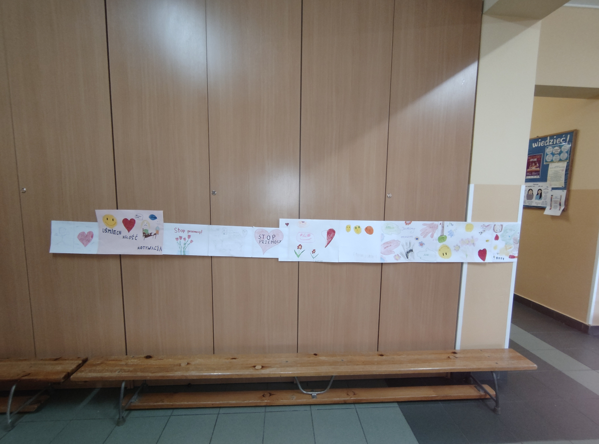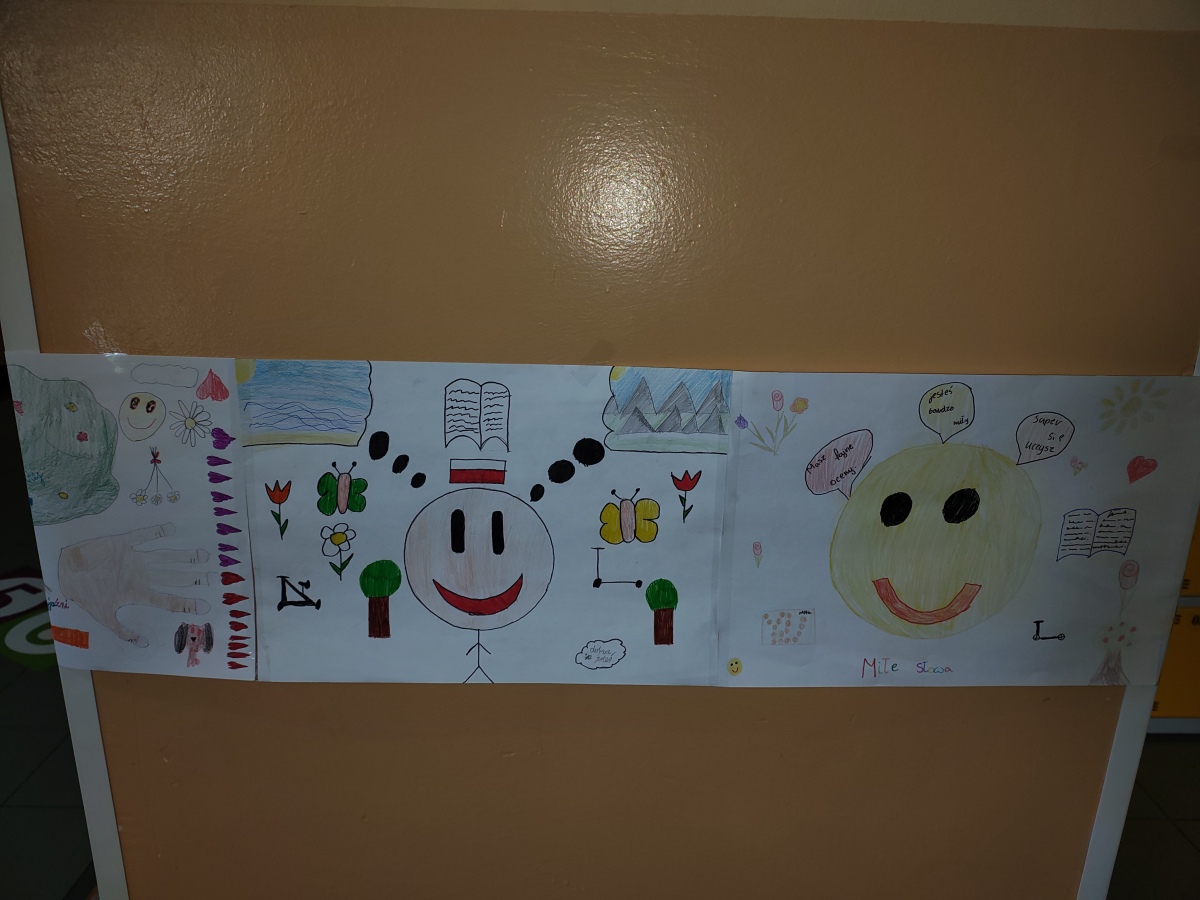 Uczniowie poza zajęciami, zabawami i materiałami dla nich i rodziców udostępnionymi na gazetkach, które nawiązywały do tematu podjęli się wykonania Muralu Pozytywnych Myśli, który zdobi nasz szkolny korytarz.