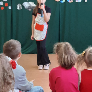 W konkursie wzięli udział uczniowie z przedszkola oraz z klas I-VI, w sumie 25 osób. Ci, którzy z powodu choroby nie mogli przyjść do szkoły, przesłali nam nagrania swojego domowego występu. Dzięki temu, mogliśmy oglądać kolegów na ekranie telewizyjnym.