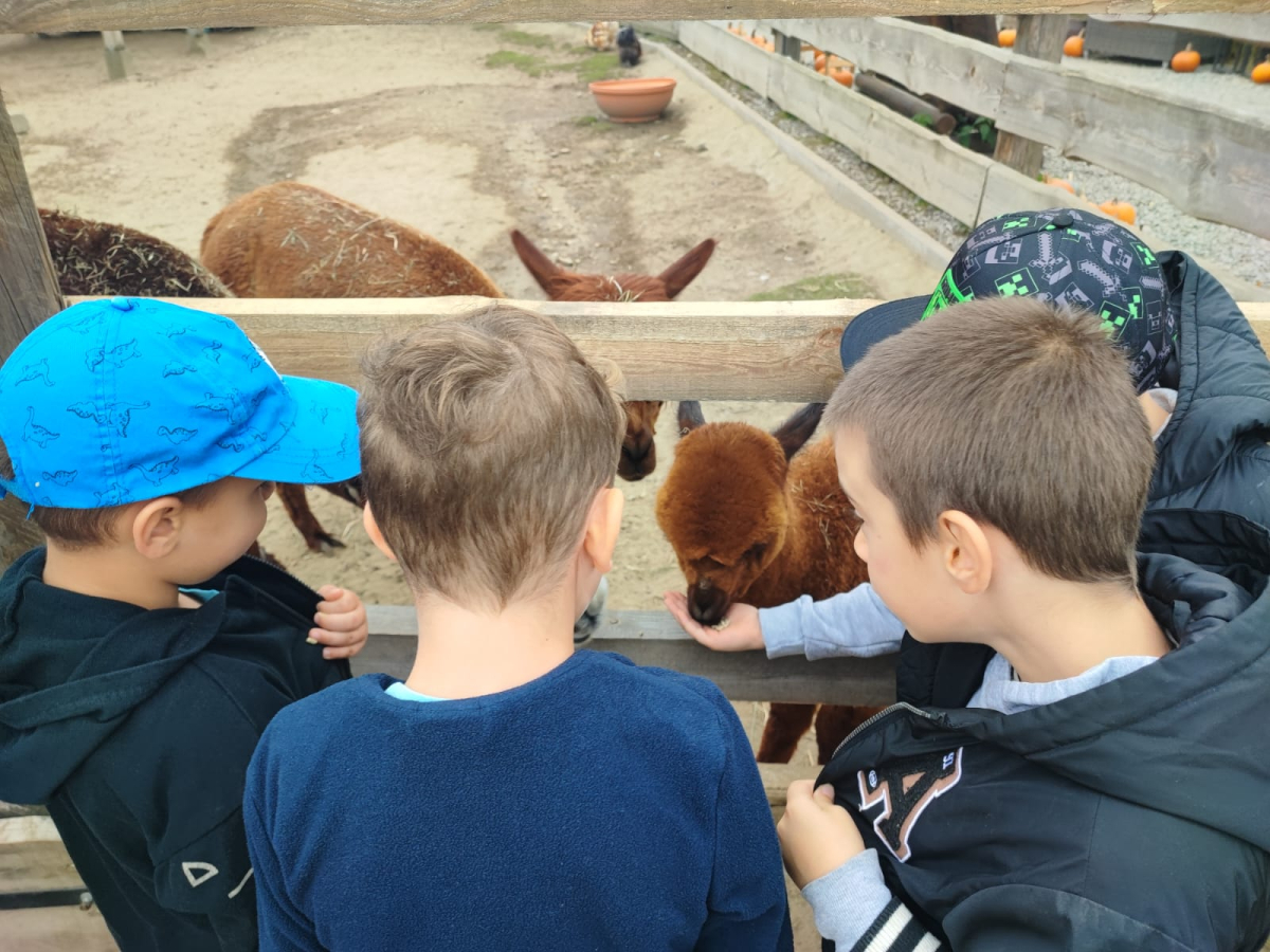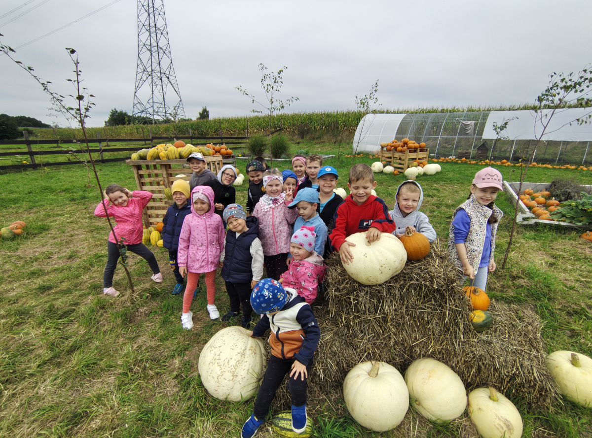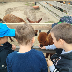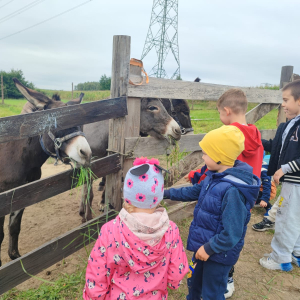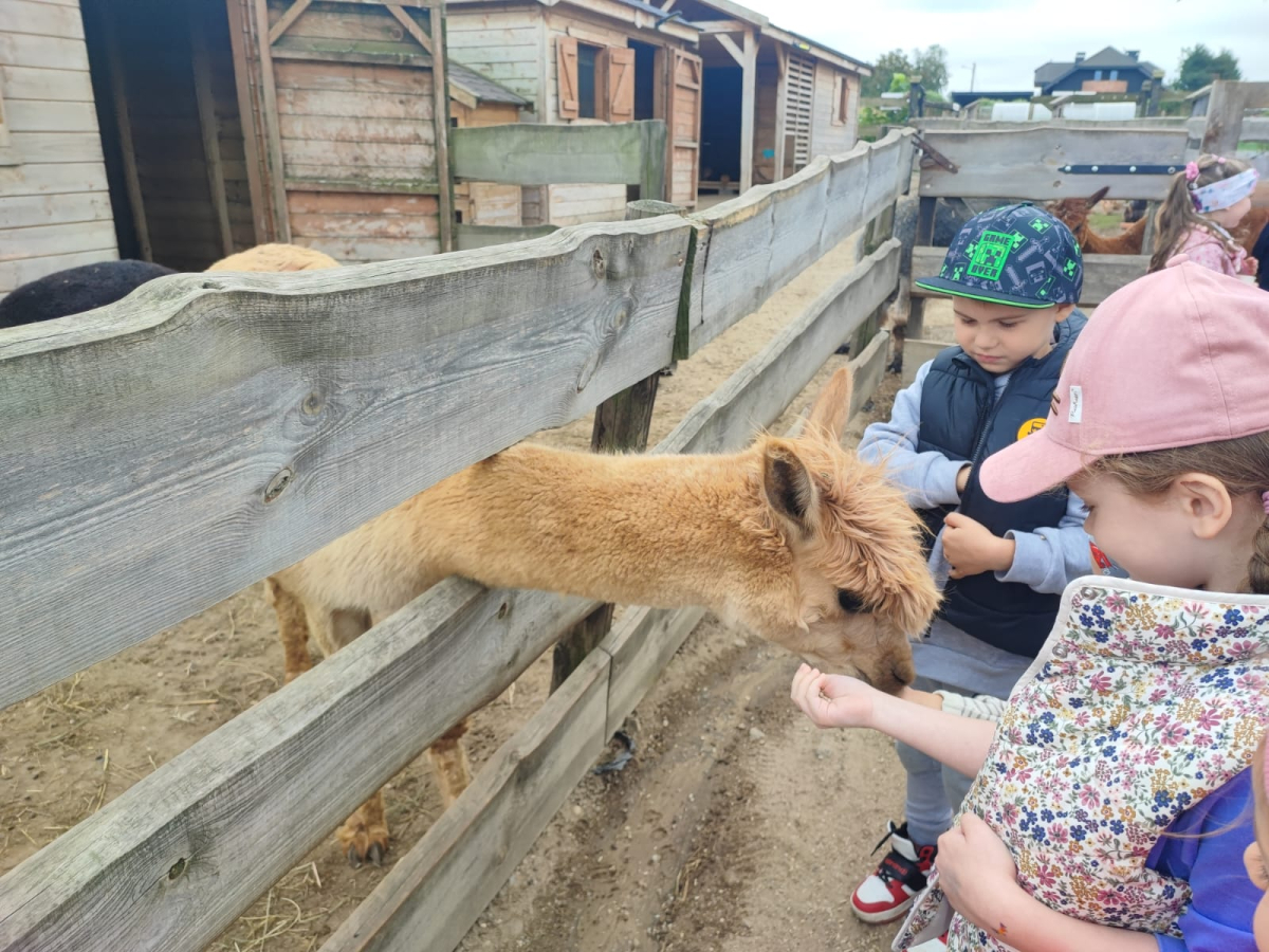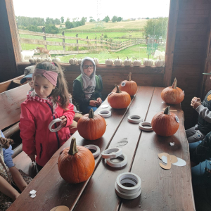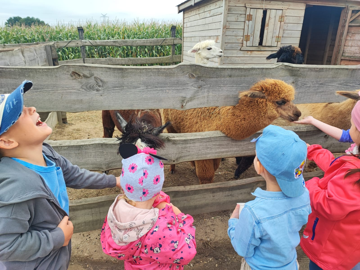 Przedszkolaki chętnie uczestniczyły w warsztatach dyniowych podczas, których wykonały z dyni małpki, następnie karmiliśmy alpaki, kozy, osiołki, króliki oraz odwiedziliśmy małpkę i szopy. Było również ognisko oraz zabawy na placu zabaw. Wróciliśmy zmęczeni, ale szczęśliwi.