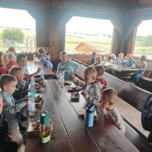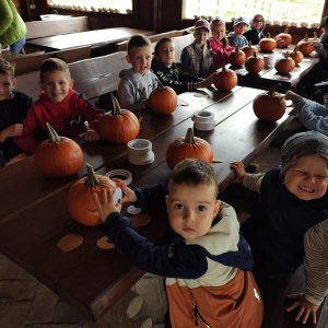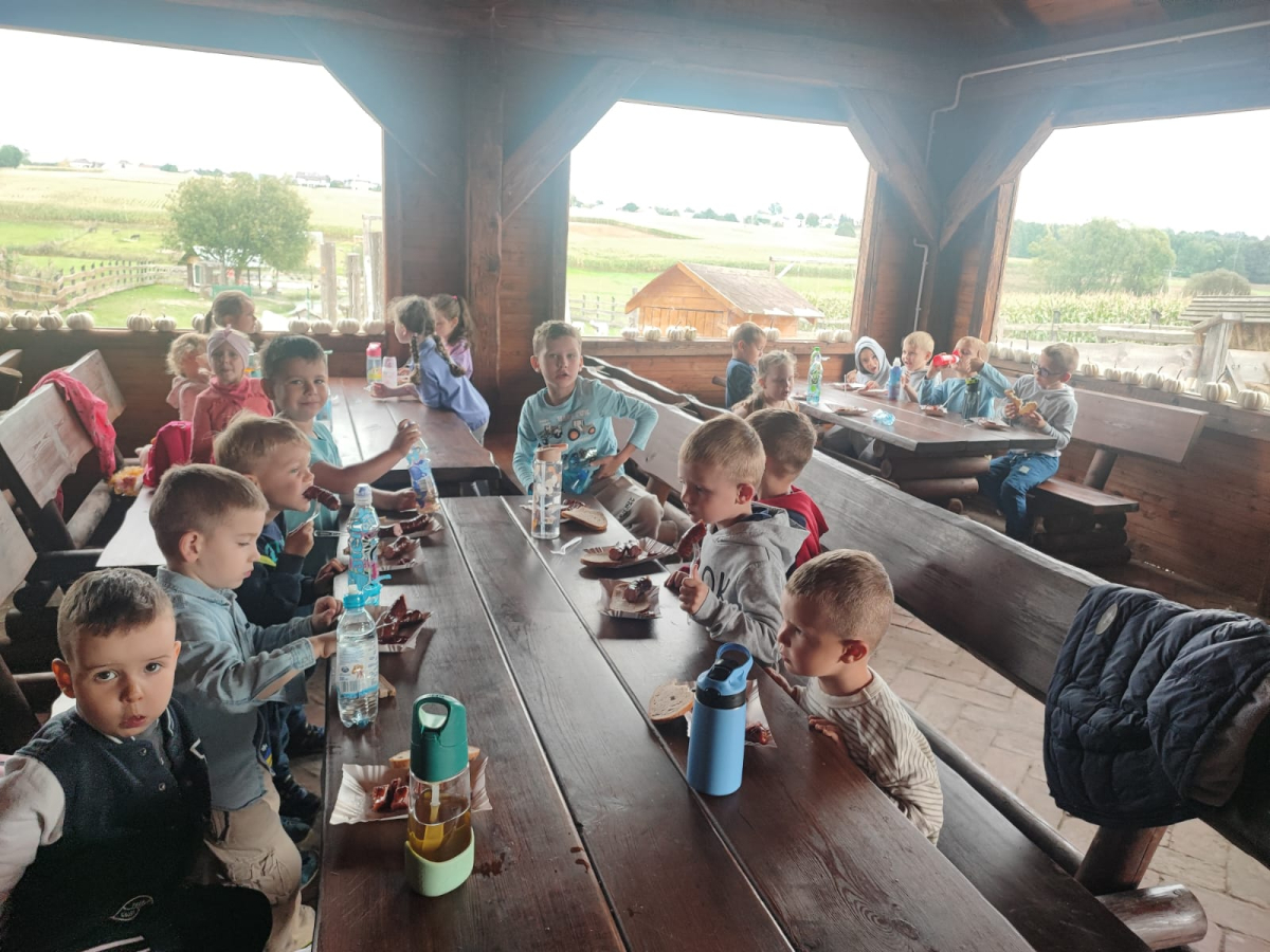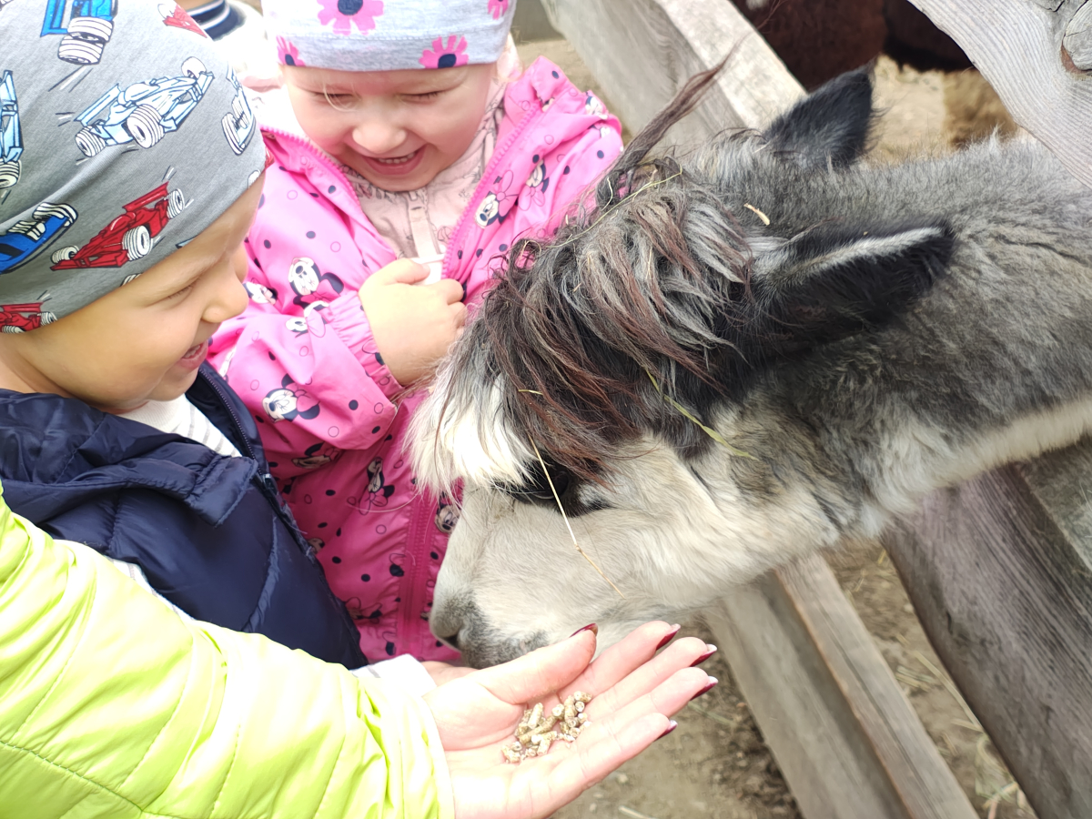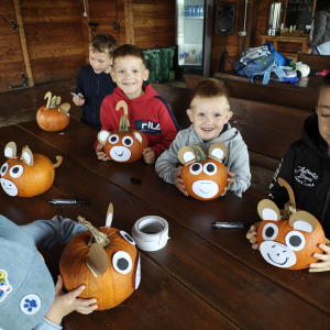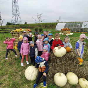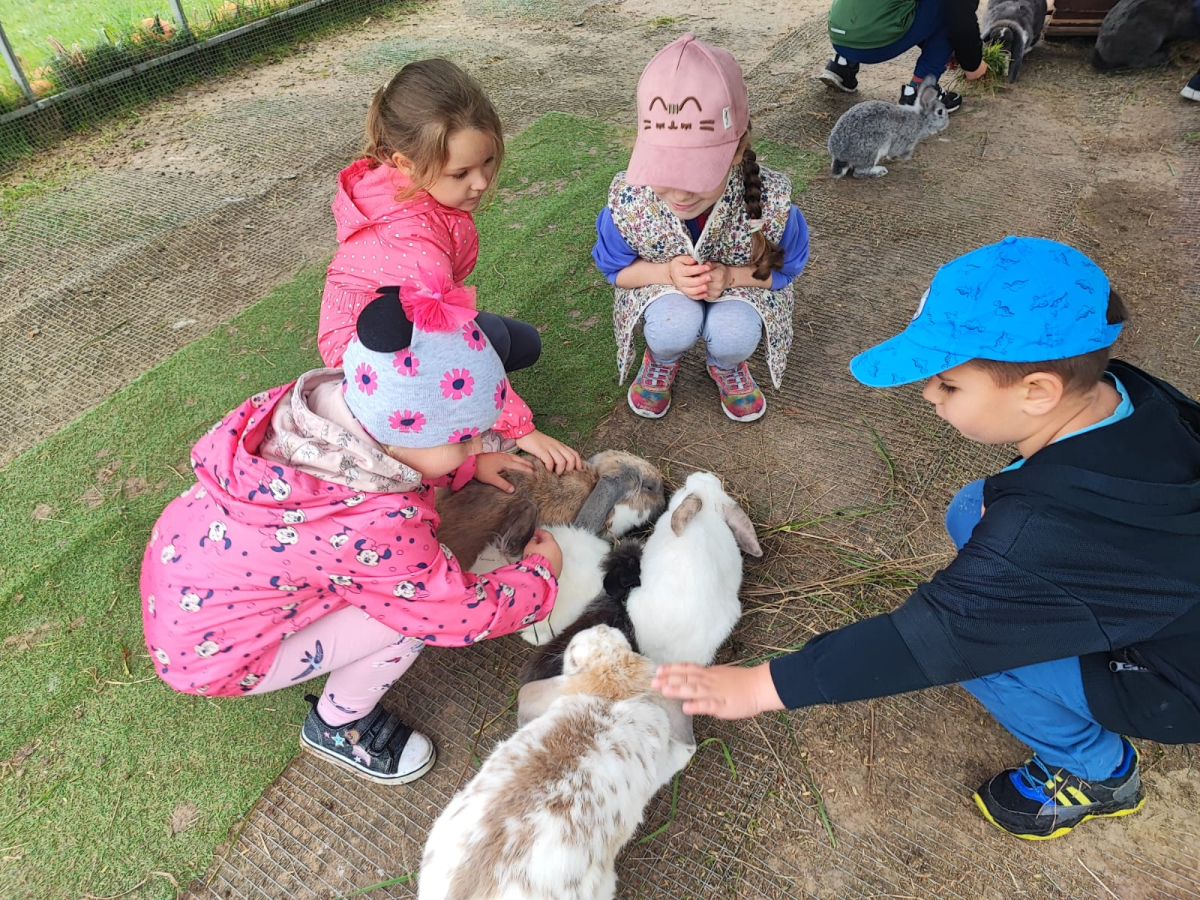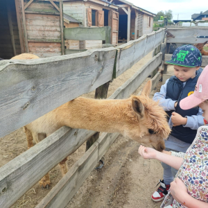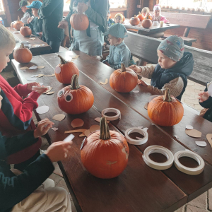 Przedszkolaki chętnie uczestniczyły w warsztatach dyniowych podczas, których wykonały z dyni małpki, następnie karmiliśmy alpaki, kozy, osiołki, króliki oraz odwiedziliśmy małpkę i szopy. Było również ognisko oraz zabawy na placu zabaw. Wróciliśmy zmęczeni, ale szczęśliwi.